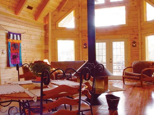 Accommodations at Executive Timbers log homes feature full kitchens, washers and dryers, wood burning fireplaces, whirlpool baths, and decks with whirlpool spas. The homes are located on a private nine-hole golf course. The resort is just minutes from Branson and from beautiful Table Rock Lake and its recreational opportunities. On-Site